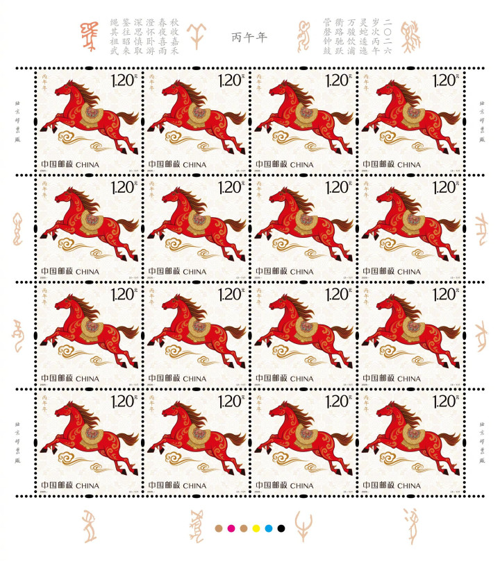 2026年《丙午年》特种邮票今日正式首发。一枚名为《驰跃宏图》配资靠谱股票配资门户,彰显力量;一枚名为《万骏臻福》,体现温情。整套邮票设计线条灵动,骏马姿态昂扬。